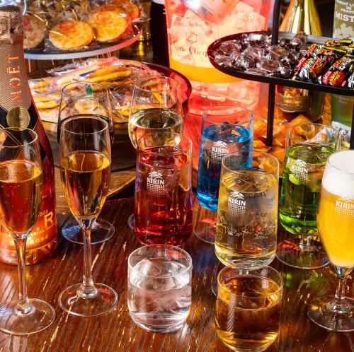 我们提供多种酒精饮料来搭配您的餐点。碳酸饮料推荐搭配口味浓烈的菜肴。此外,如果您是酒会等宴会,也欢迎品尝我们的无限畅饮套餐!2-3小时无限畅饮,让您与同伴悠闲地享用美食。我们也可以包租整间餐厅,欢迎随时垂询。